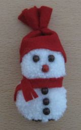 Unser Modell wurde mit dem Pick & Pom gemacht, die Pompons werden damit ca. 4,5 cm groß. Die Pompons können auch mit dem Pompon-Set gemacht werden, dann werden sie etwas größer oder kleiner. Dabei muß ggf. auch die Größe der Filzstreifen (Mütze und Schal) angepasst werden.