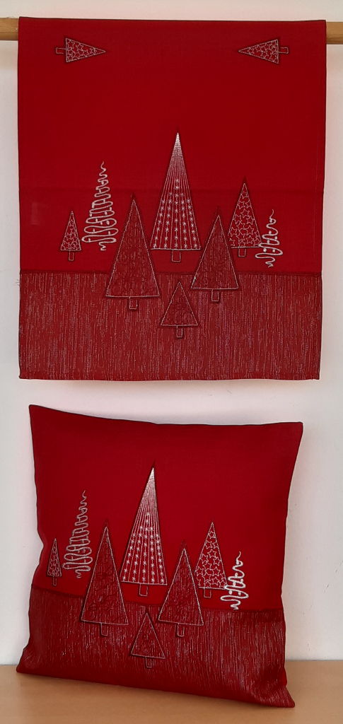 rot mit Stickerei Bäume