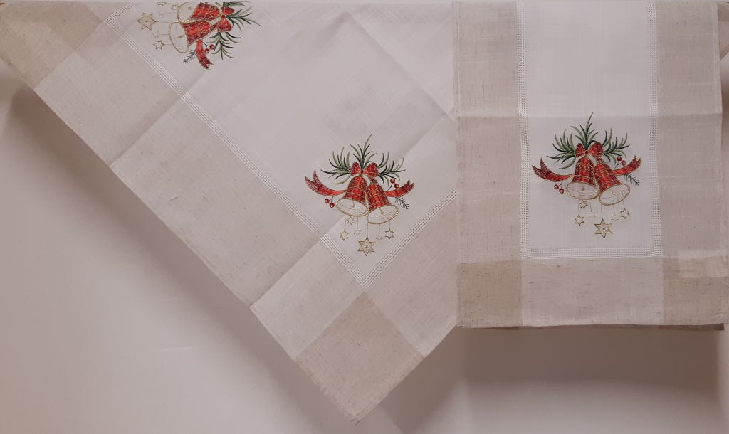 mit Stickerei Glocke auf Leinenoptik